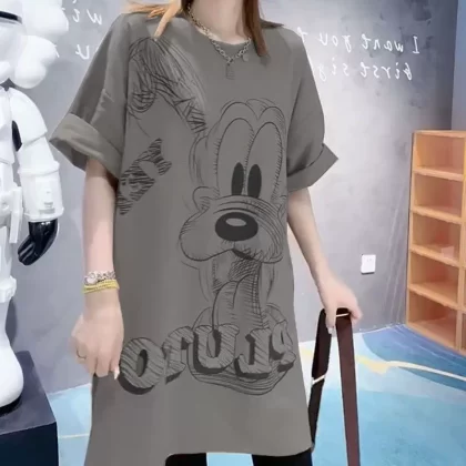 إضافة نسخة سمينة كبيرة الحجم الكبير 2-300 Catties الدهون MM الصيف الكارتون طباعة القميص قصير الأكمام لقمة التقليل من العمر للسيدات