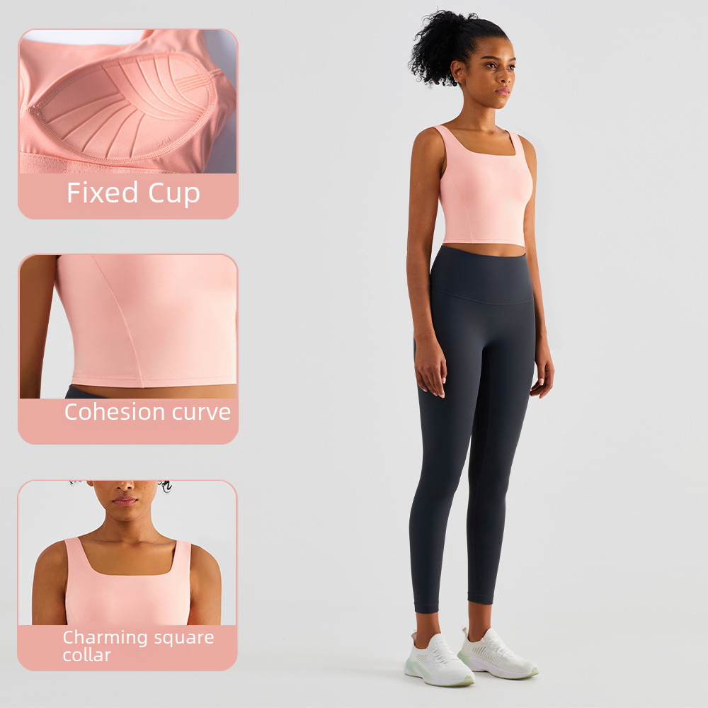 Aidu New Sports Underwear Naked Square Collar Shockproof Fixed Cup Yoga Vest Fake Two-piece Beautiful Back Fitness Bra