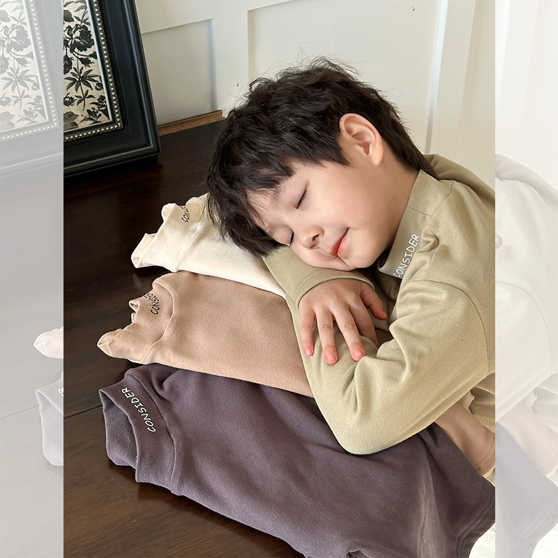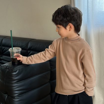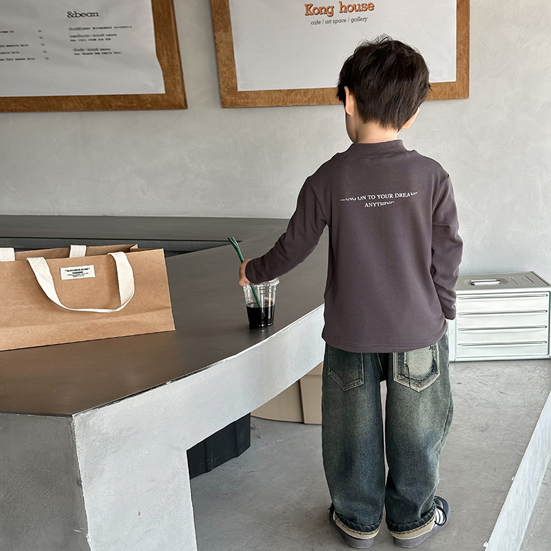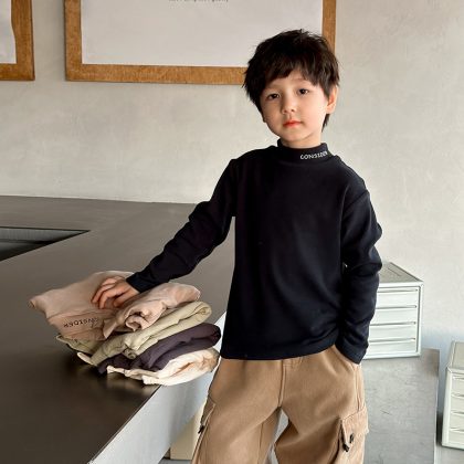 | nameOriginal | Aimo Beibei children's thickened fleece-lined wool pull rack bottoming shirt boys and girls baby warm mid-collar letter top |