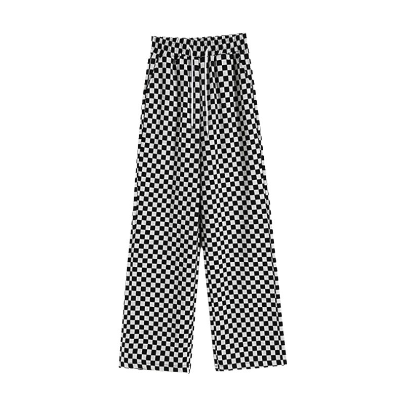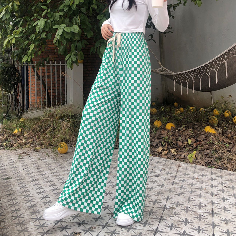 | nameOriginal | Air conditioning cool pants women's summer high waist drawstring ice silk pants thin printed mop straight pants chessboard Plaid wide leg pants |
