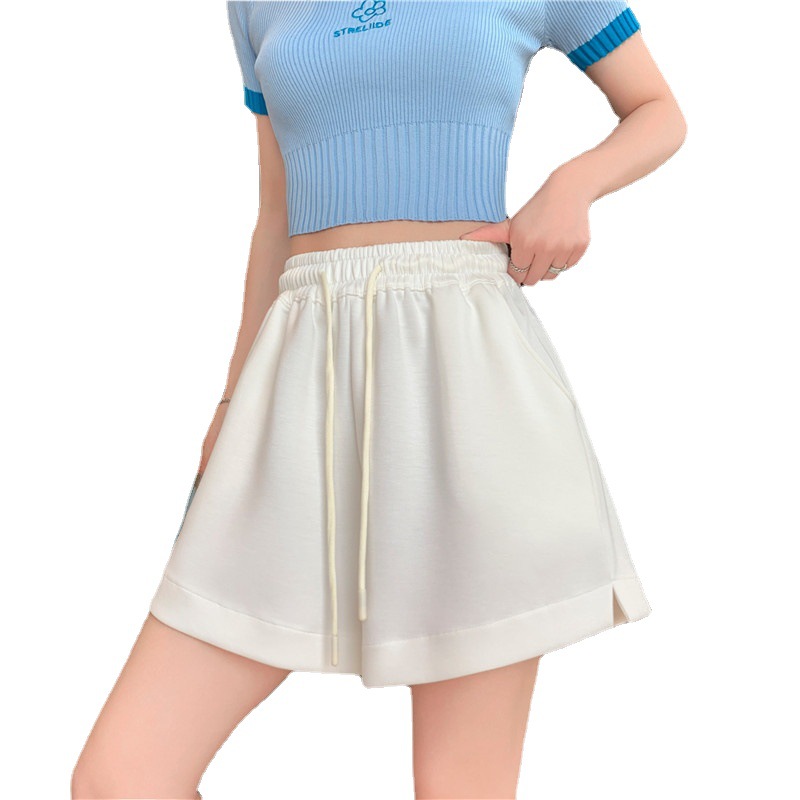 (Air Layer Split Shorts) American Style High Waist Sports Loose Shorts Casual Slimming All-match Pants Women