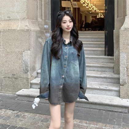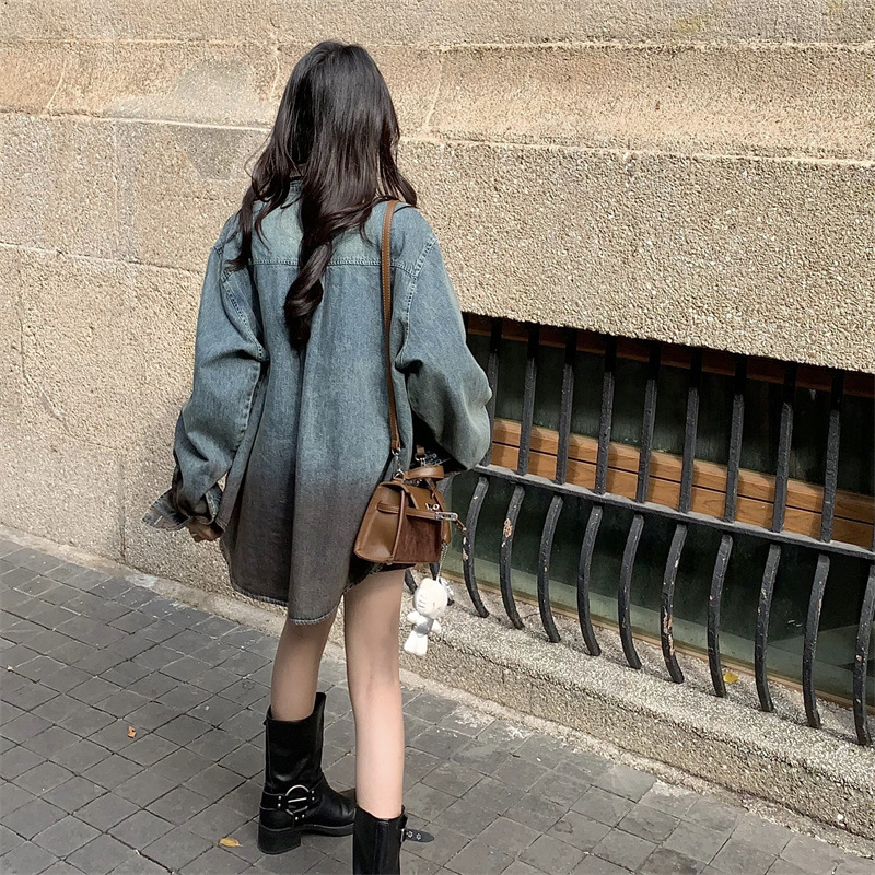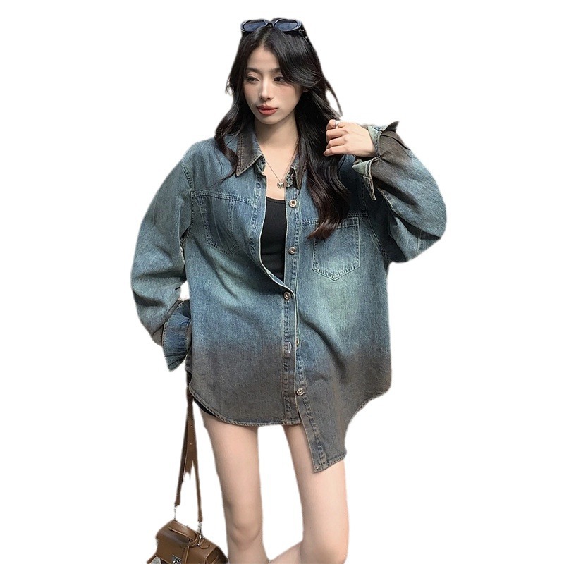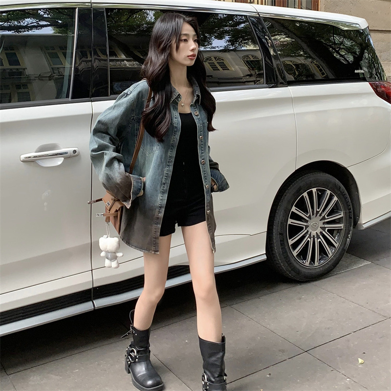 | nameOriginal | Aiyixuan retro Hong Kong style draping Denim shirt women's new style inner wear Korean style design coat top |