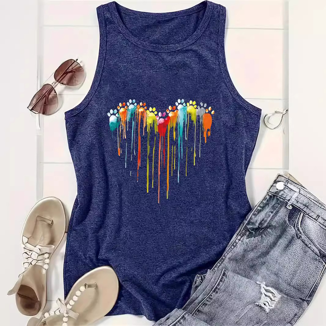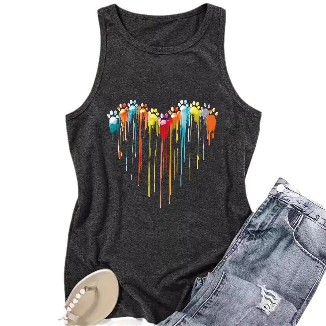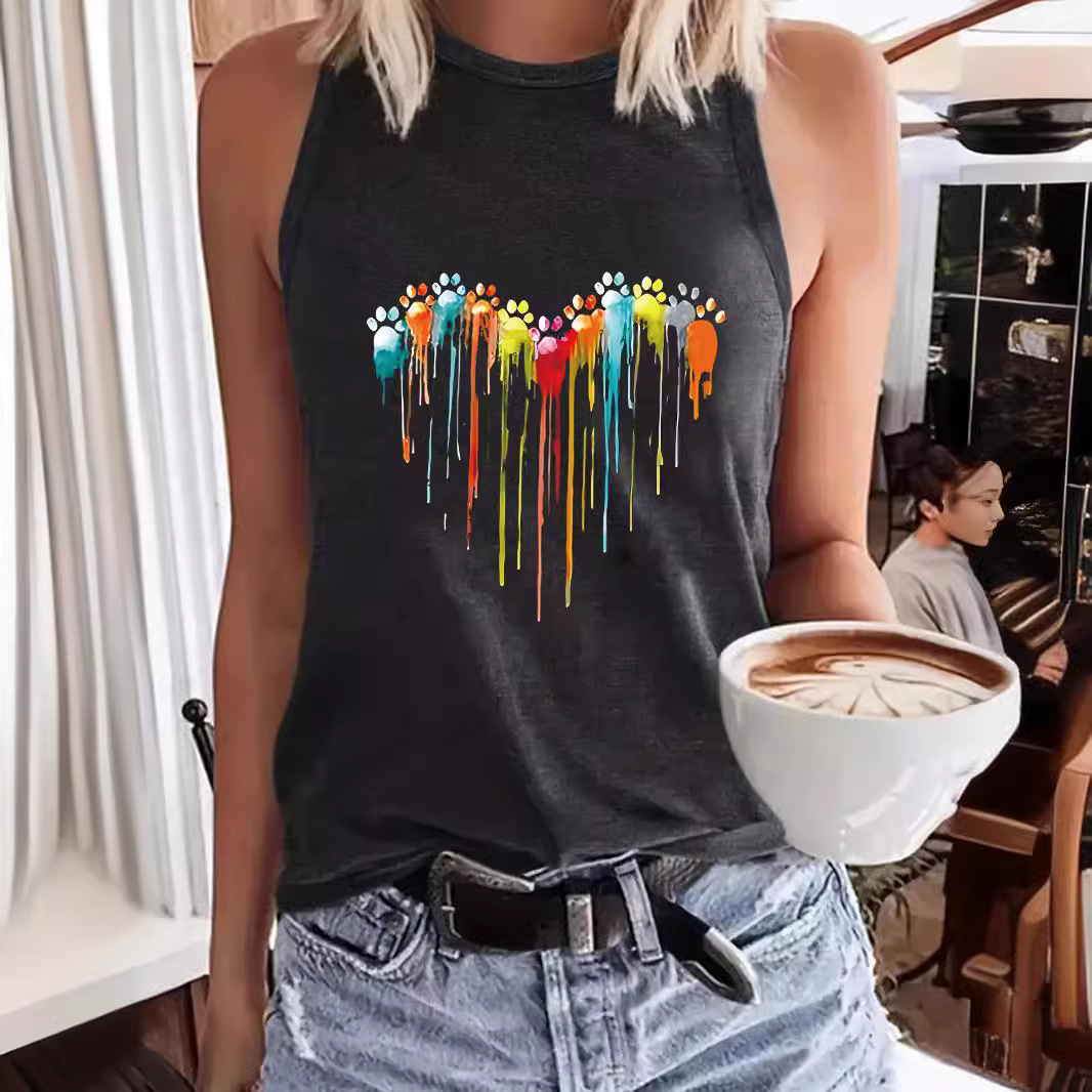 | nameOriginal | AliExpress Amazon Hot Footprint Printing Spring and Summer Sleeveless Top T-Shirt Round Neck Pullover Foreign Trade Vest Women |
