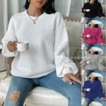 AliExpress أمازون ملابس نسائية جديدة 2024 أوروبا وأمريكا عبر الحدود بلون سادة وياقة دائرية وأكمام طويلة