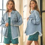 AliExpress محطة مستقلة عبر الحدود 2024 الربيع والخريف المرأة سترة طويلة الأكمام أعلى المتوترة هامش برشام معطف الدنيم