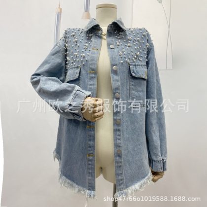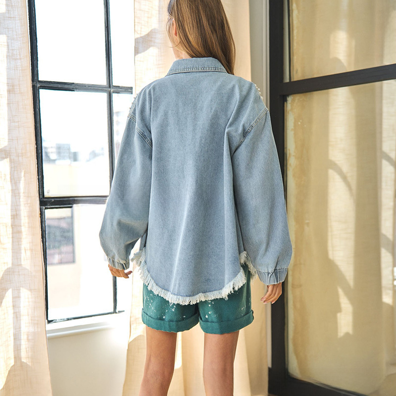 AliExpress independent station cross-border 2024 spring and autumn women's long-sleeved jacket top frayed fringe rivet Denim coat
