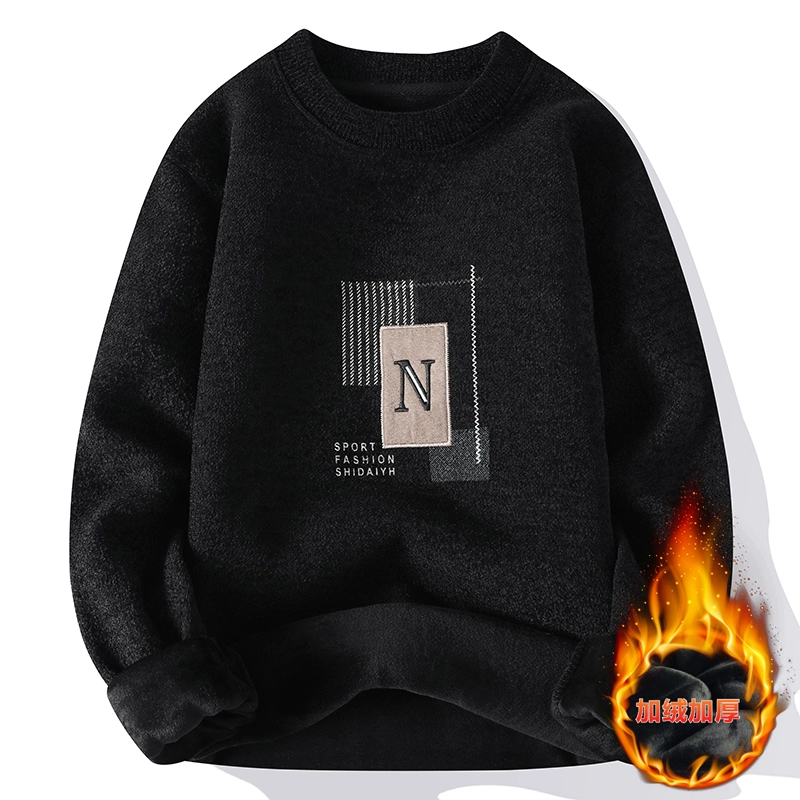 All-in-one velvet crew neck sweater for men, autumn and winter plus velvet sweatshirt, warm sweater pullover, soft waxy bottoming sweater