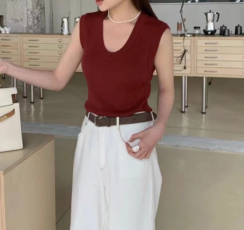 All-Match Solid Color Simple Sleeveless Knitted Vest Women's Wool Blended Slim-Fit Slim Inner Base Top