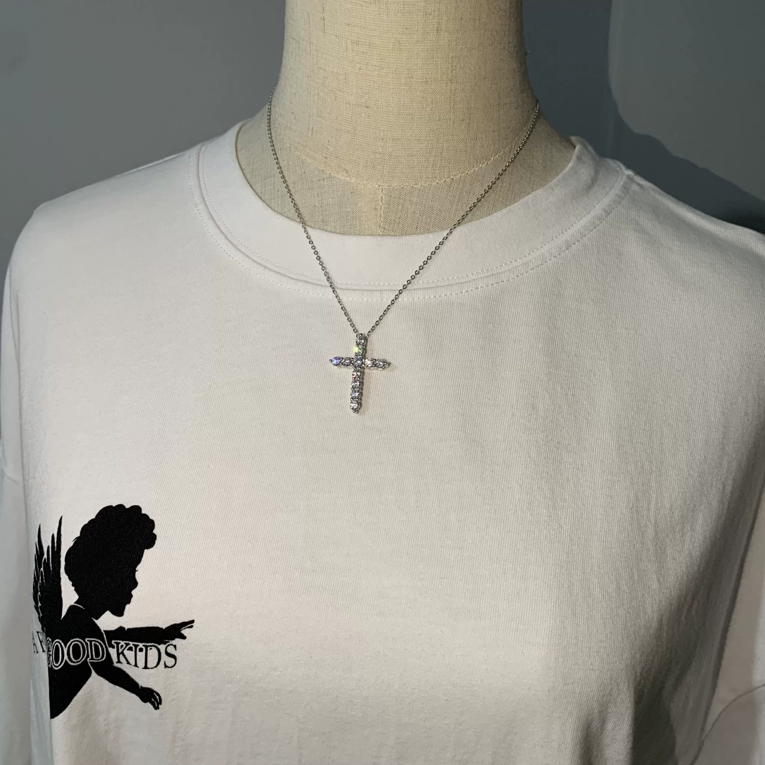 | nameOriginal | All-over sterling silver full diamond couple American cross pendant |