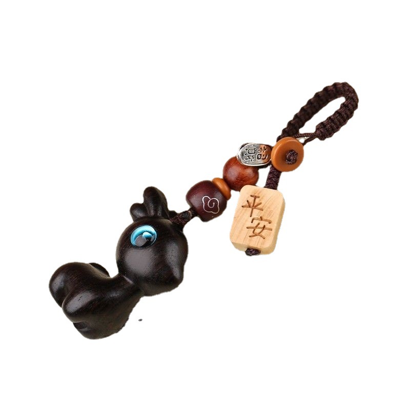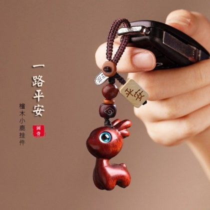 | nameOriginal | All the way hanging sandalwood deer car keychain hanging cute piece fresh mobile phone U chain flat pendant men and women ornaments |
