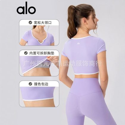 | nameOriginal | aloyoga new V-neck contrast short yoga short sleeve with chest pad shockproof running fitness Pilates T-shirt summer |