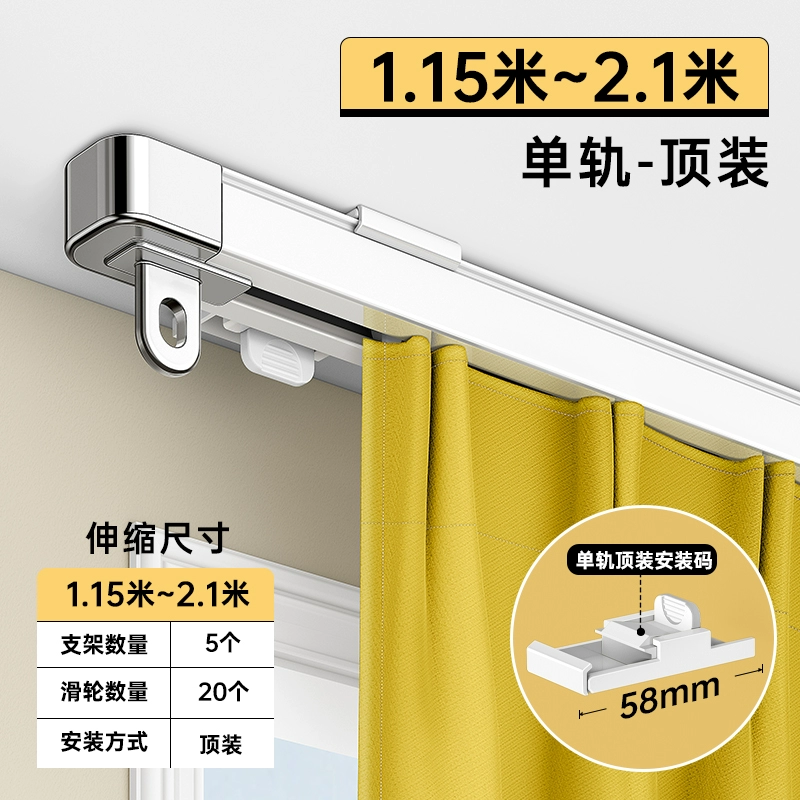 Aluminum alloy curtain track double track silent integrated hook type slide rail telescopic pulley slide curtain box curtain rod