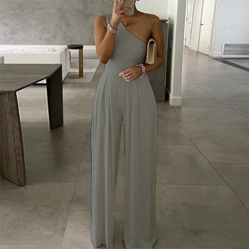 | nameOriginal | Amazon 2023 European and American summer new European and American women's elegant solid color slant waist wide leg jumpsuit |