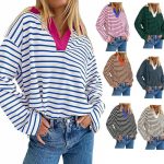 | nameOriginal | Amazon 2024 Europe and the United States cross-border foreign trade autumn and winter new striped V-neck contrast color loose long sleeve sweater coat |