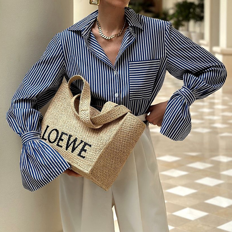 | nameOriginal | Amazon 2024 European and American women's spring and summer new cross-border women's fashion temperament striped printed lapel shirt |