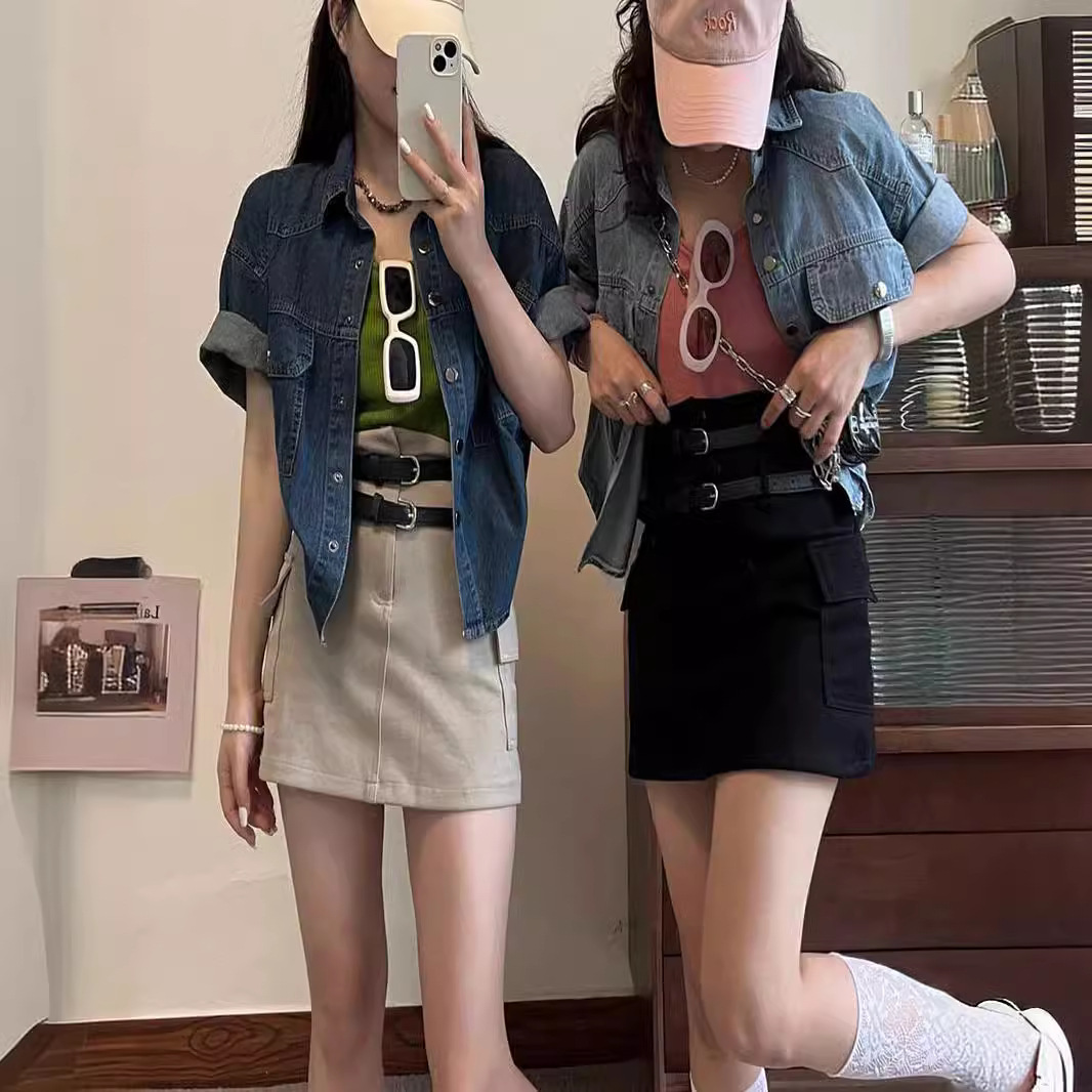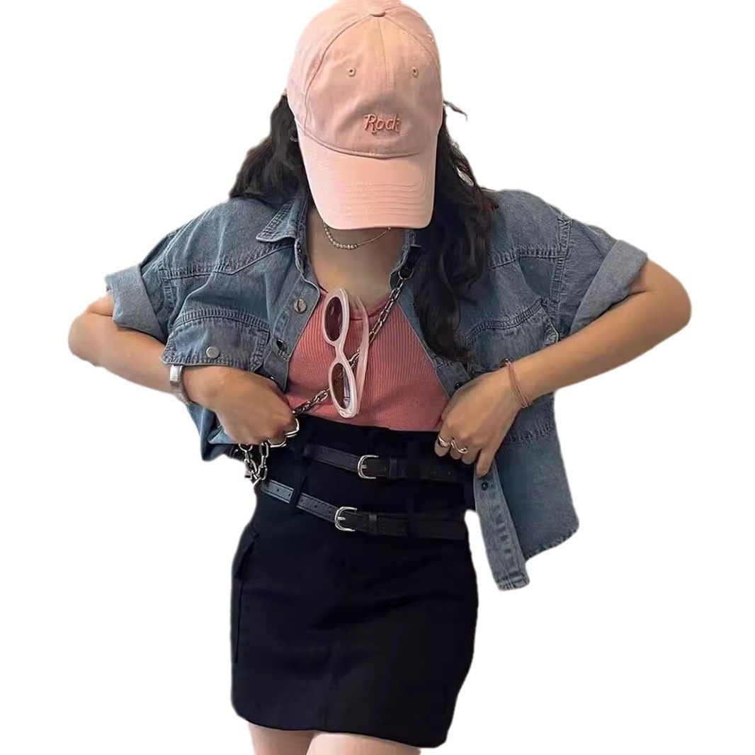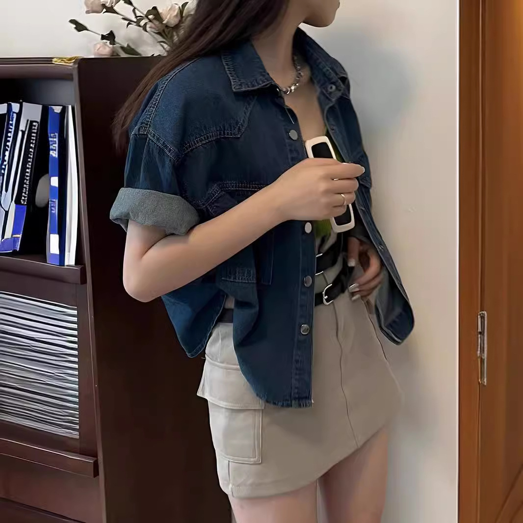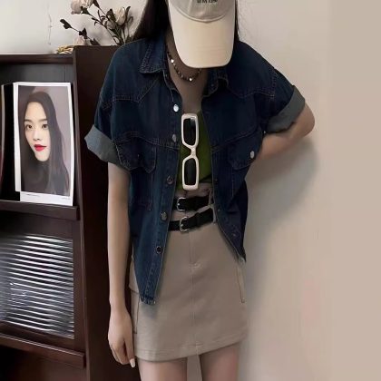 Amazon 2024 South Korea Retro Hong Kong Style Single-breasted Denim Short Coat Women's All-match Loose Slimming Western Style Top