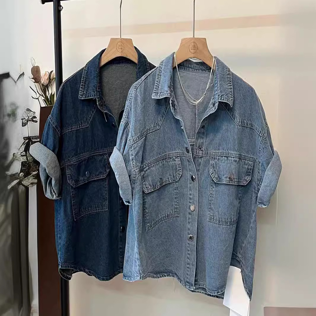 أمازون 2024 كوريا الجنوبية ريترو هونغ كونغ نمط واحدة الصدر الدنيم معطف قصير المرأة كل مباراة فضفاضة التخسيس النمط الغربي