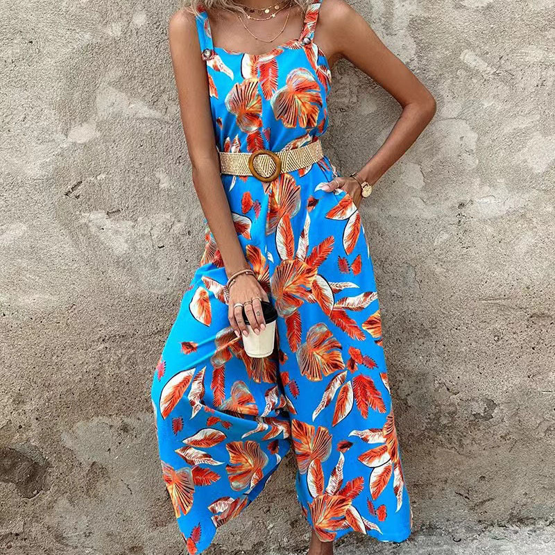 | nameOriginal | Amazon AliExpress 2024 European and American fashion new strap printed waist jumpsuit with belt |