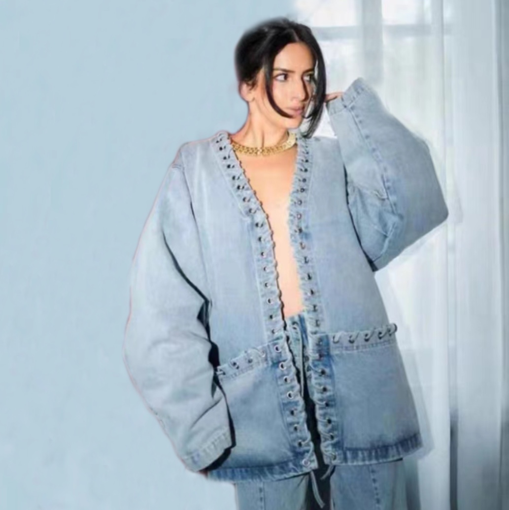 معطف نسائي من الدنيم مغسول على الموضة الأوروبية والأمريكية من Amazon AliExpress TUME
