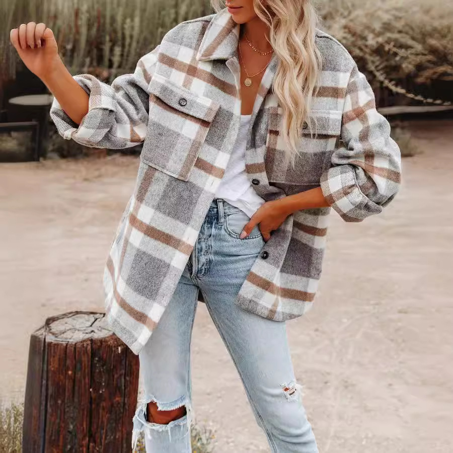 | nameOriginal | Amazon Autumn and Winter European and American Women's Autumn and Winter Long Sleeve Lapel Loose Plaid Woolen Jacket |
