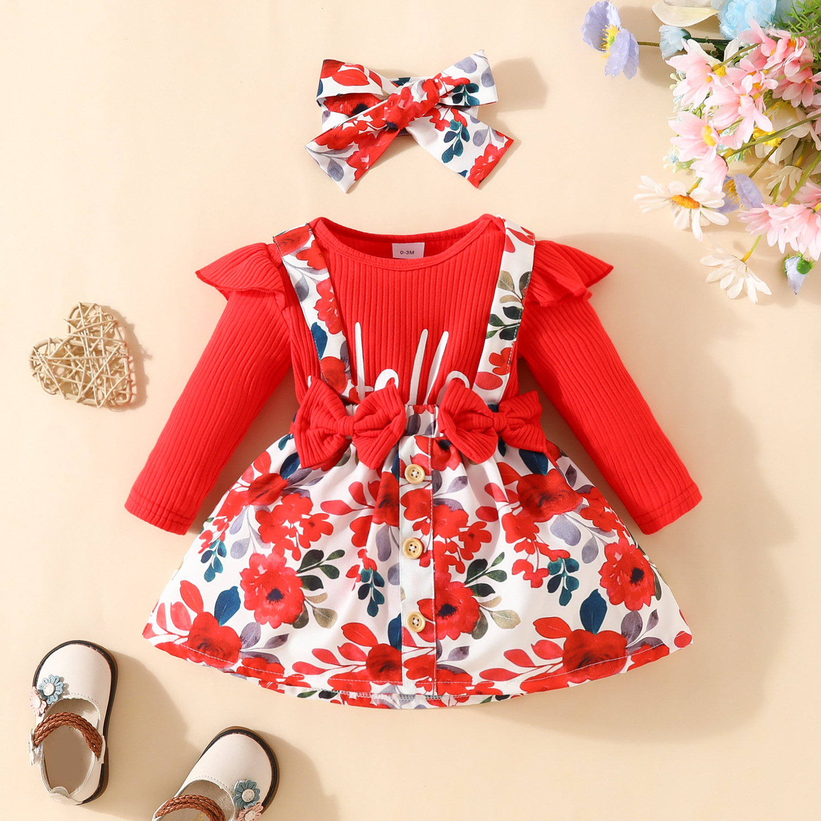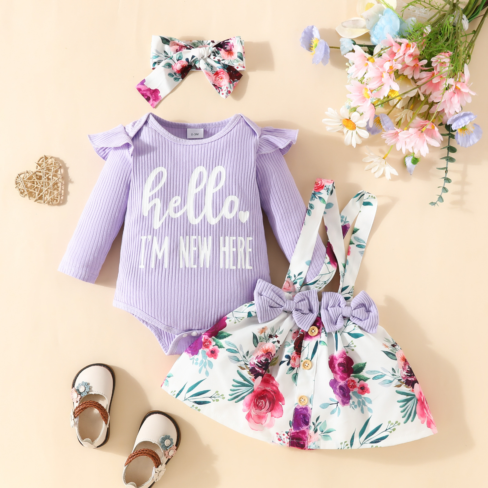 | nameOriginal | Amazon baby girl dress suit spring and autumn 0-1 years old girl long sleeve letter Top + flower butterfly suspender skirt hair band |
