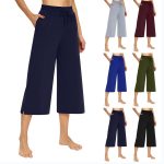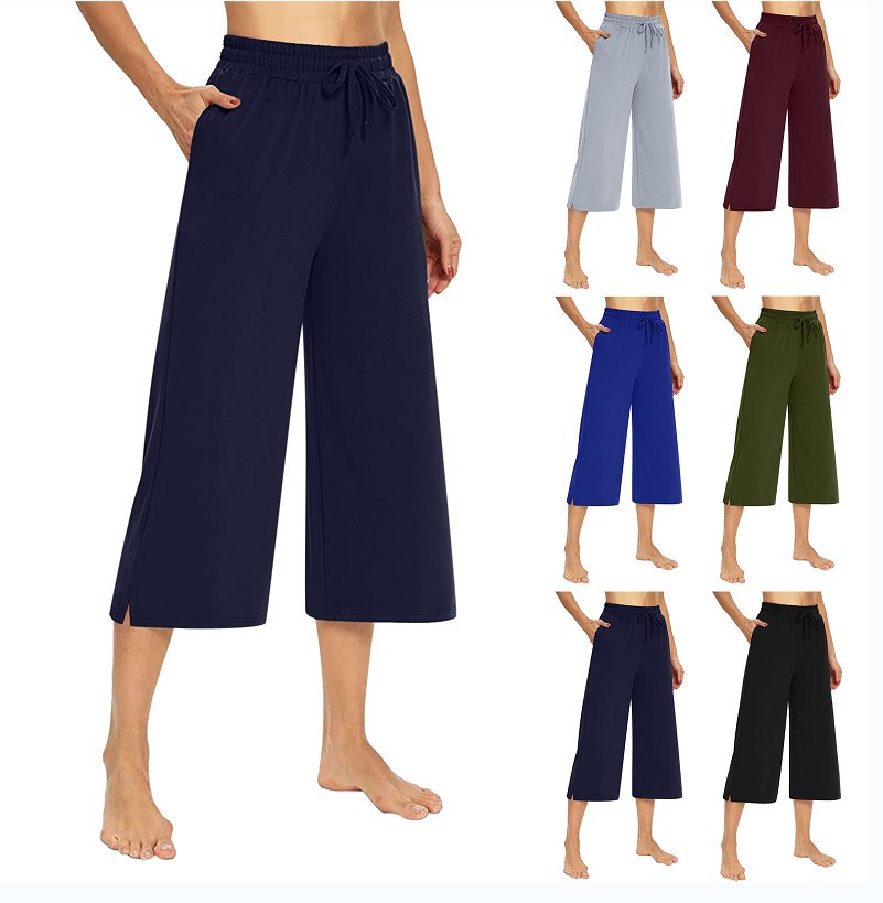 | nameOriginal | Amazon cross-border new ladies solid color wide leg pants high waist drawstring pocket cropped casual pants spot |
