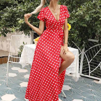 | nameOriginal | Amazon cross-border supply Europe and the United States women's foreign trade Europe station summer waist short sleeve wave split dress |