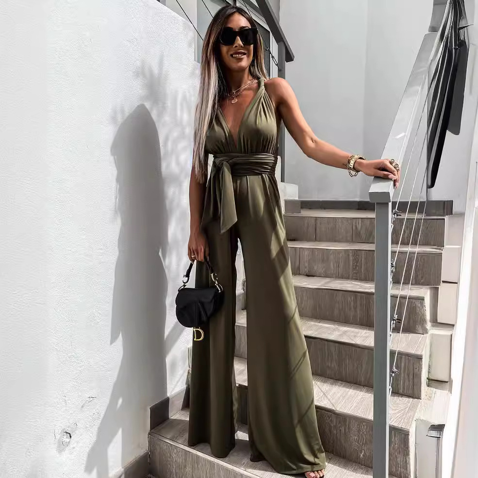 Amazon cross-border trade eBay sleeveless solid color lace-up jumpsuit