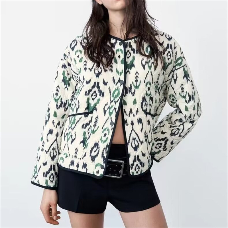 Amazon Cross-border Women's Clothing European and American ins Style 2024 Spring and Autumn Fashion All-match Printed Quilted Cotton Jacket for Women