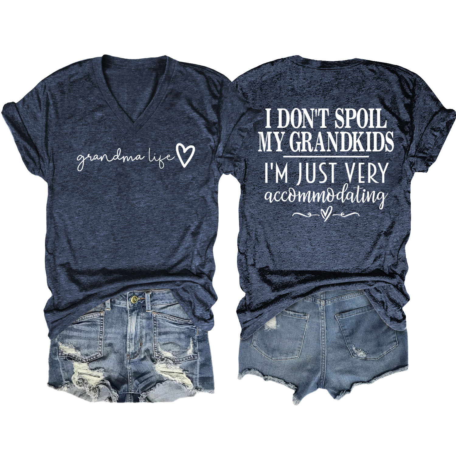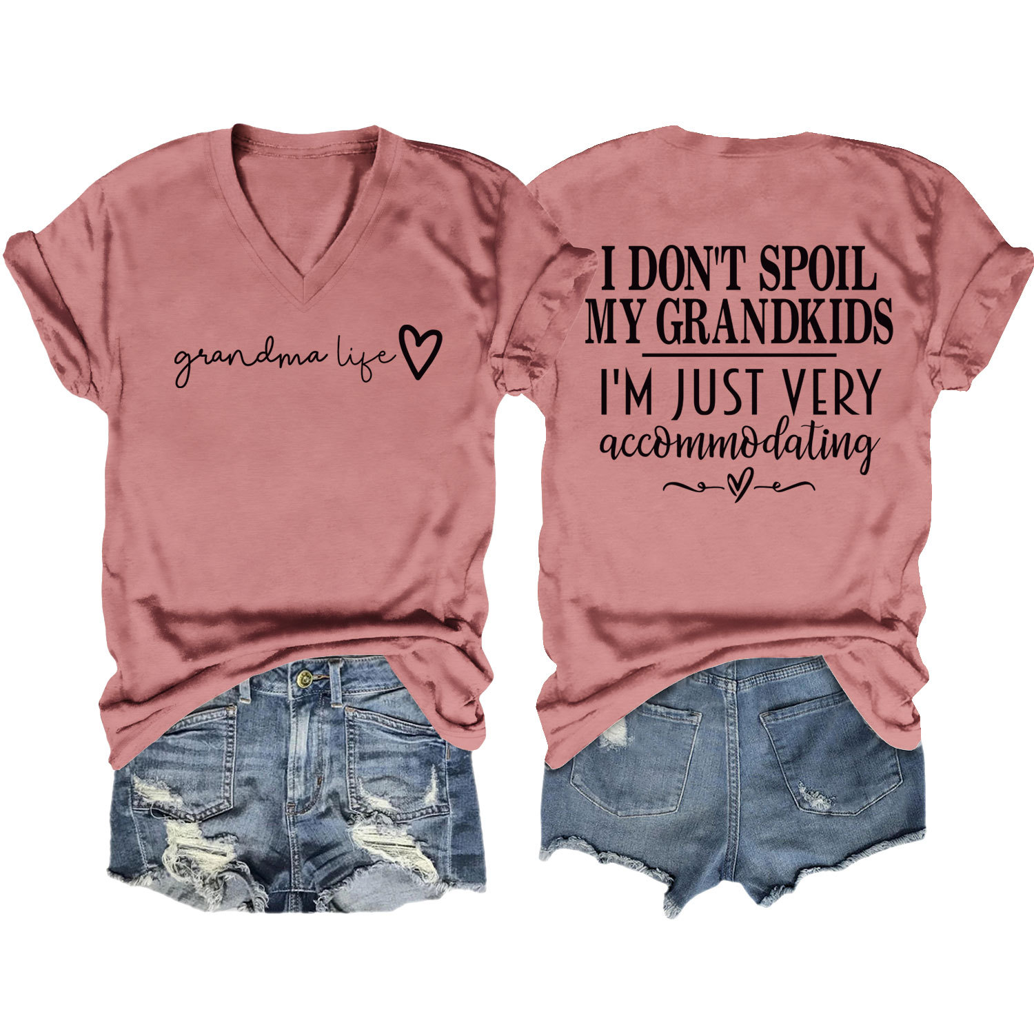 | nameOriginal | Amazon eBay cross-border V-neck temperament women's short sleeve I Don't Spoil My Grandkids European and American T-shirt |