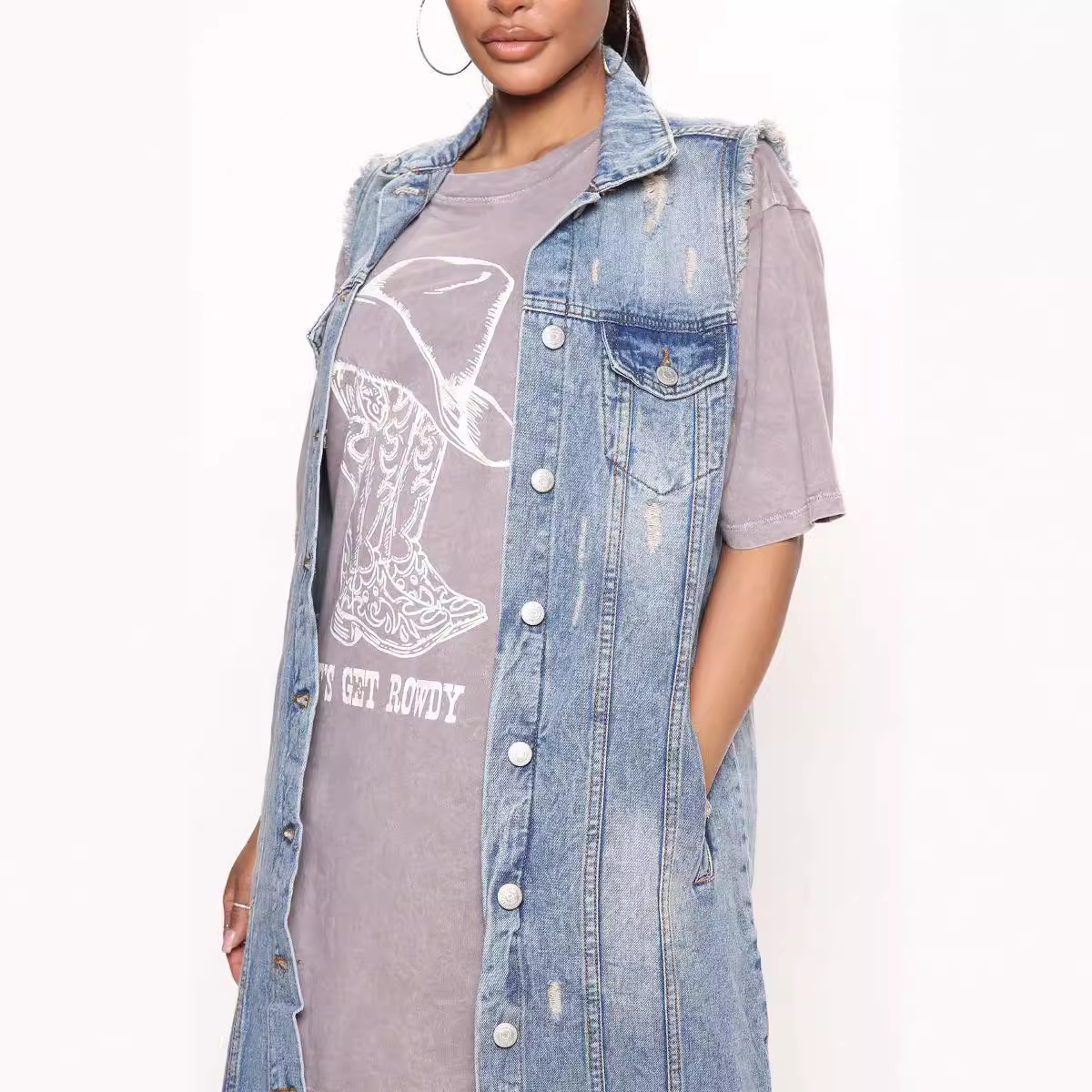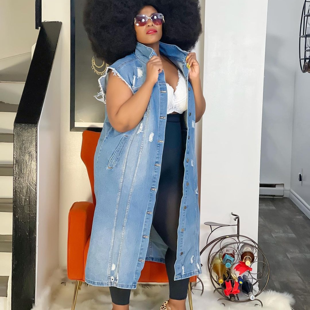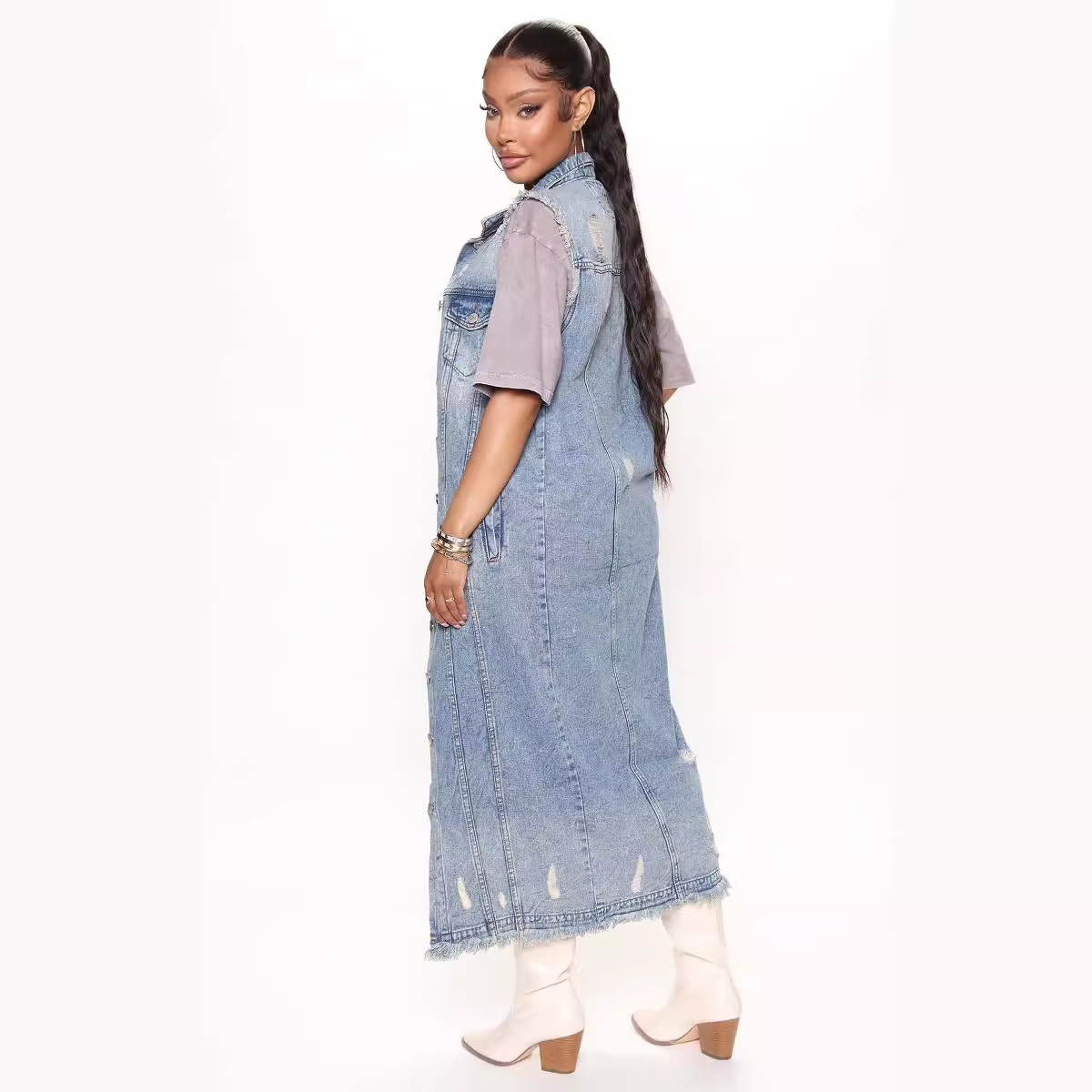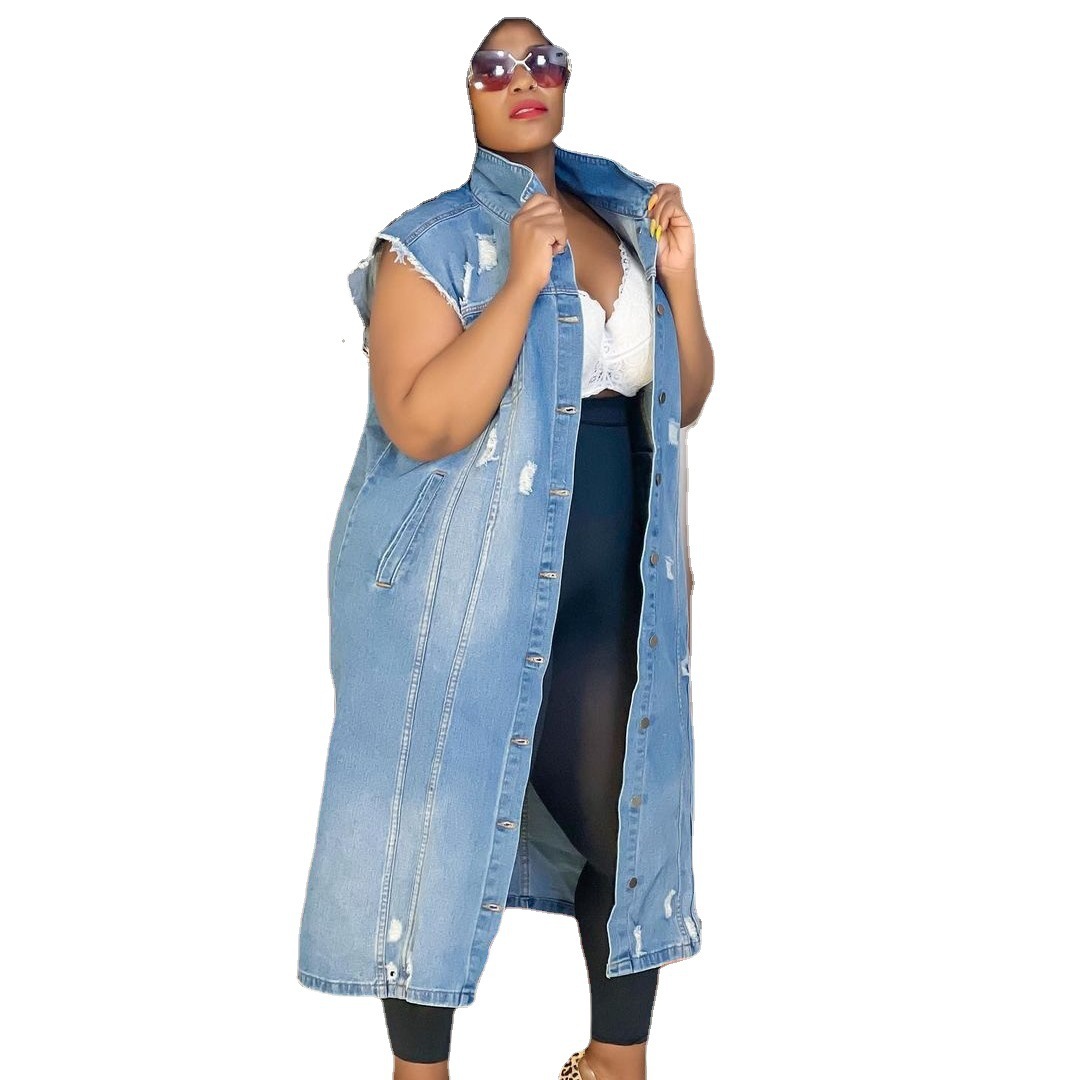 | nameOriginal | Amazon eBay denim clothing for women 2023 Spring and Autumn new large long blue ripped slim Denim trench coat |