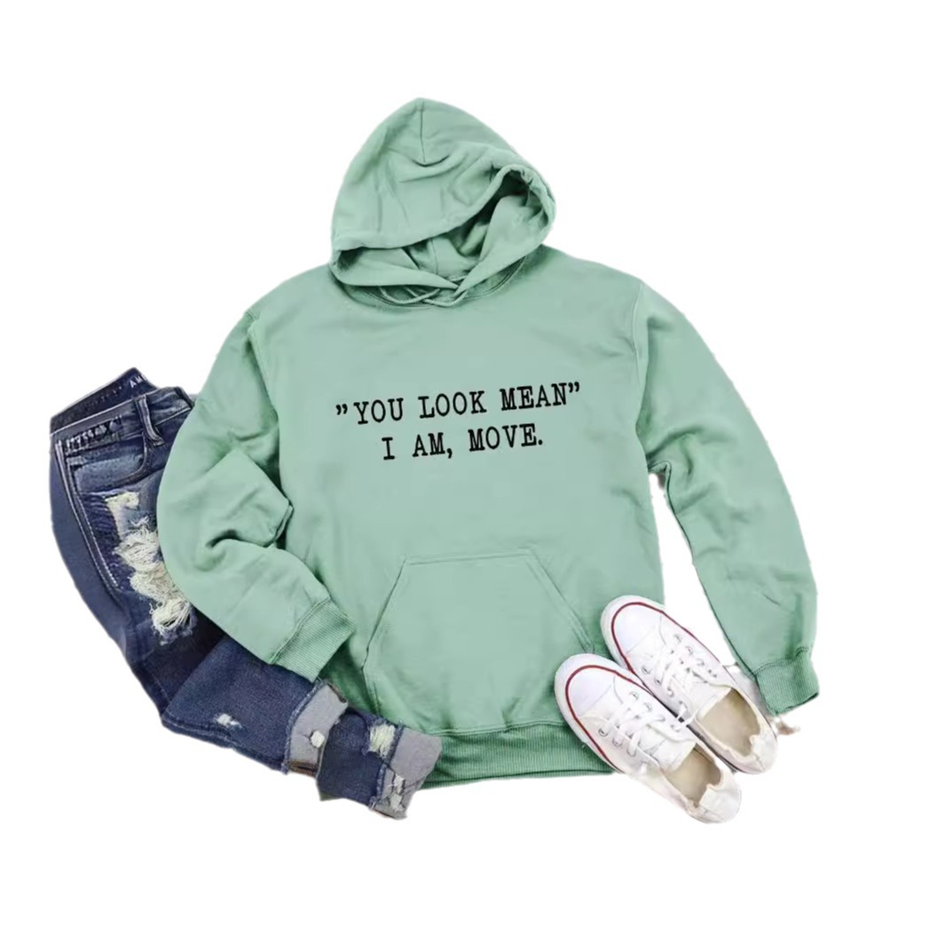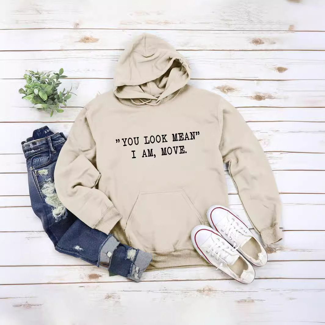 Amazon eBay new fashion hooded sweater YOU LOOK MEAN I AM MOVE all-match women's coat