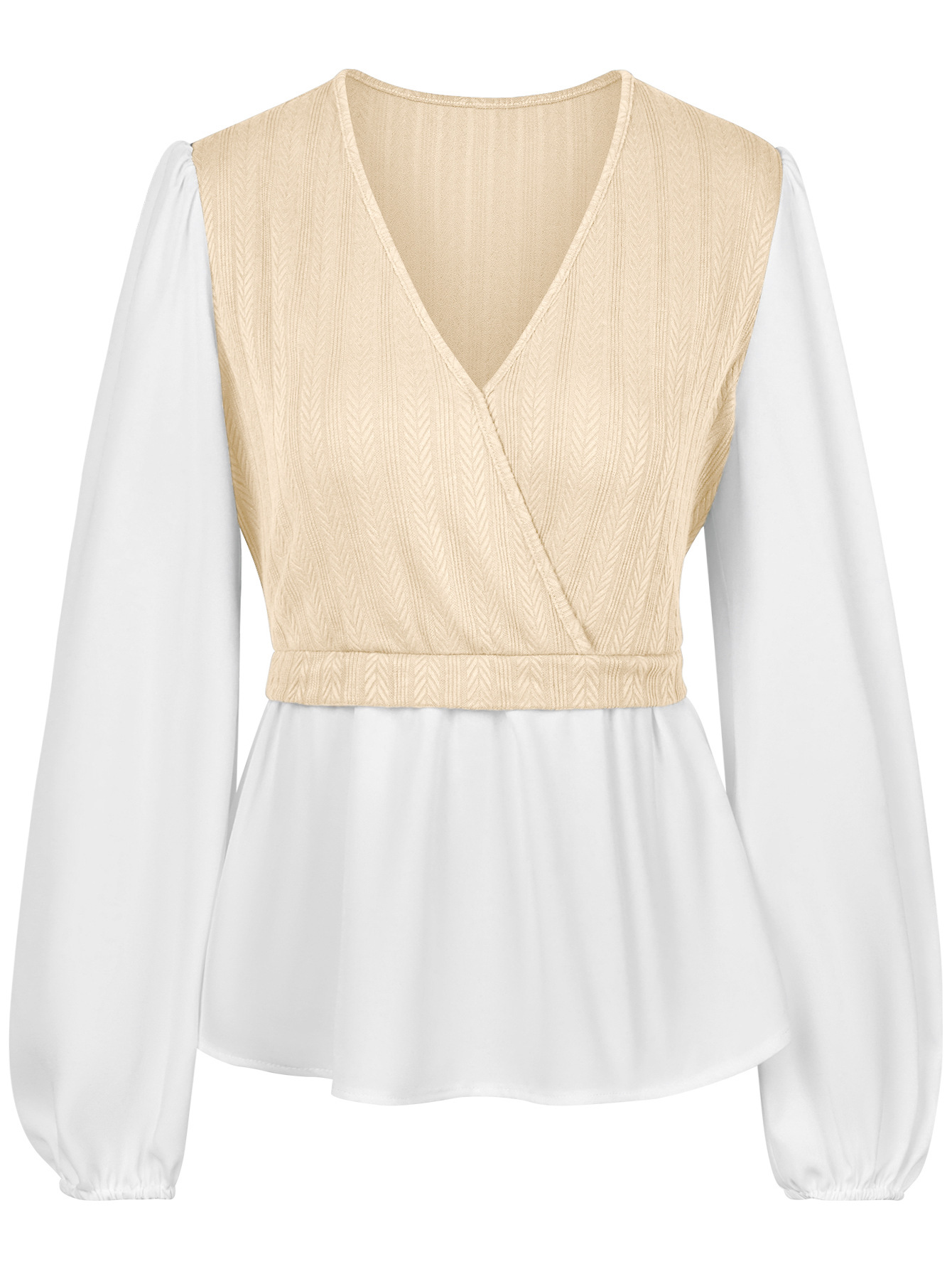 | nameOriginal | Amazon eBay2023 European and American Autumn and Winter New Women's Cross-border Casual Solid Color V-neck Stitching Long Sleeve Top for Women |