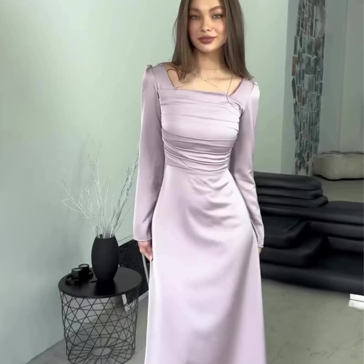 | nameOriginal | Amazon European and American cross-border 2024 spring new slim fit Diamond strap long sleeve satin slim fit dress women |