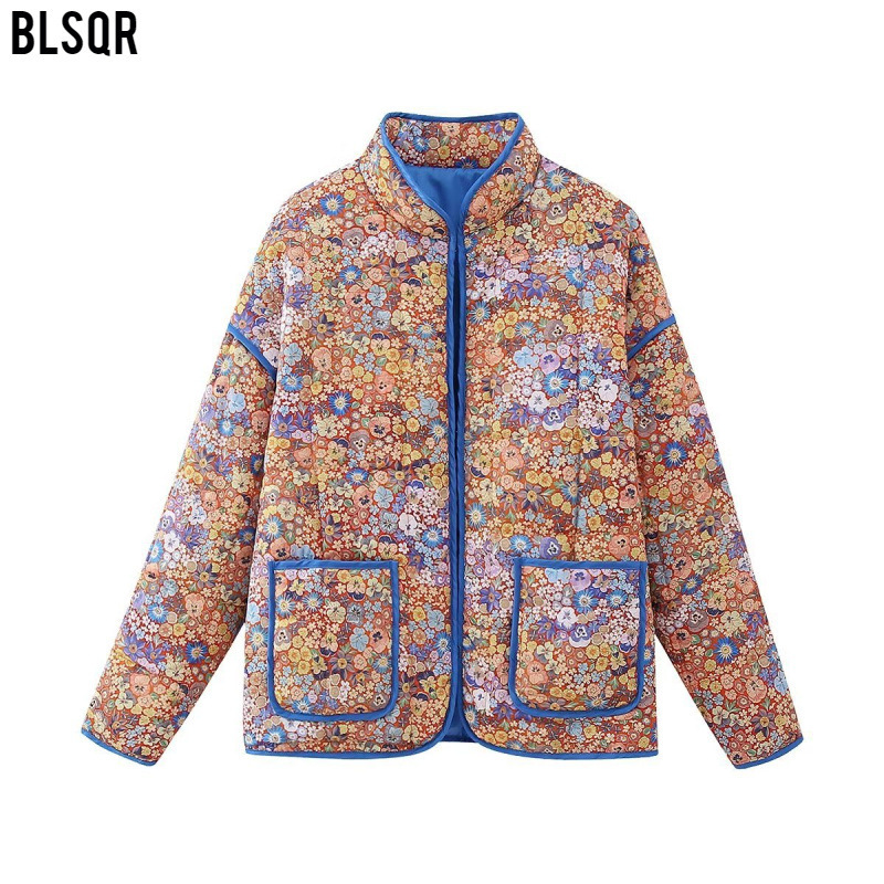 | nameOriginal | Amazon European and American cross-border women's clothing printing color matching large pocket stand collar quilted cotton-padded coat women's D15770 |