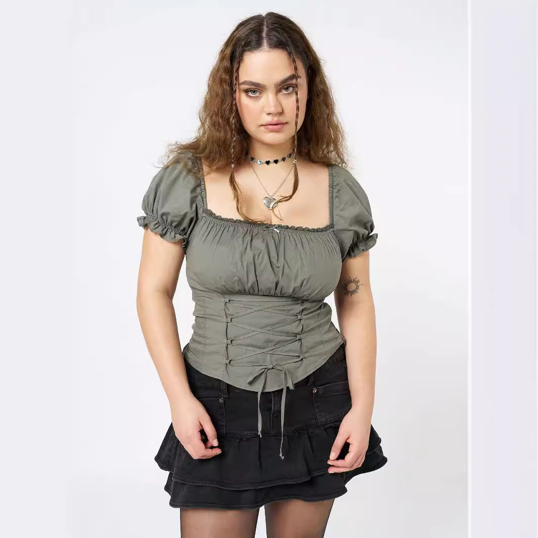 Amazon four-color New lace bow short-sleeved shirt lace color matching off-neck bottoming shirt