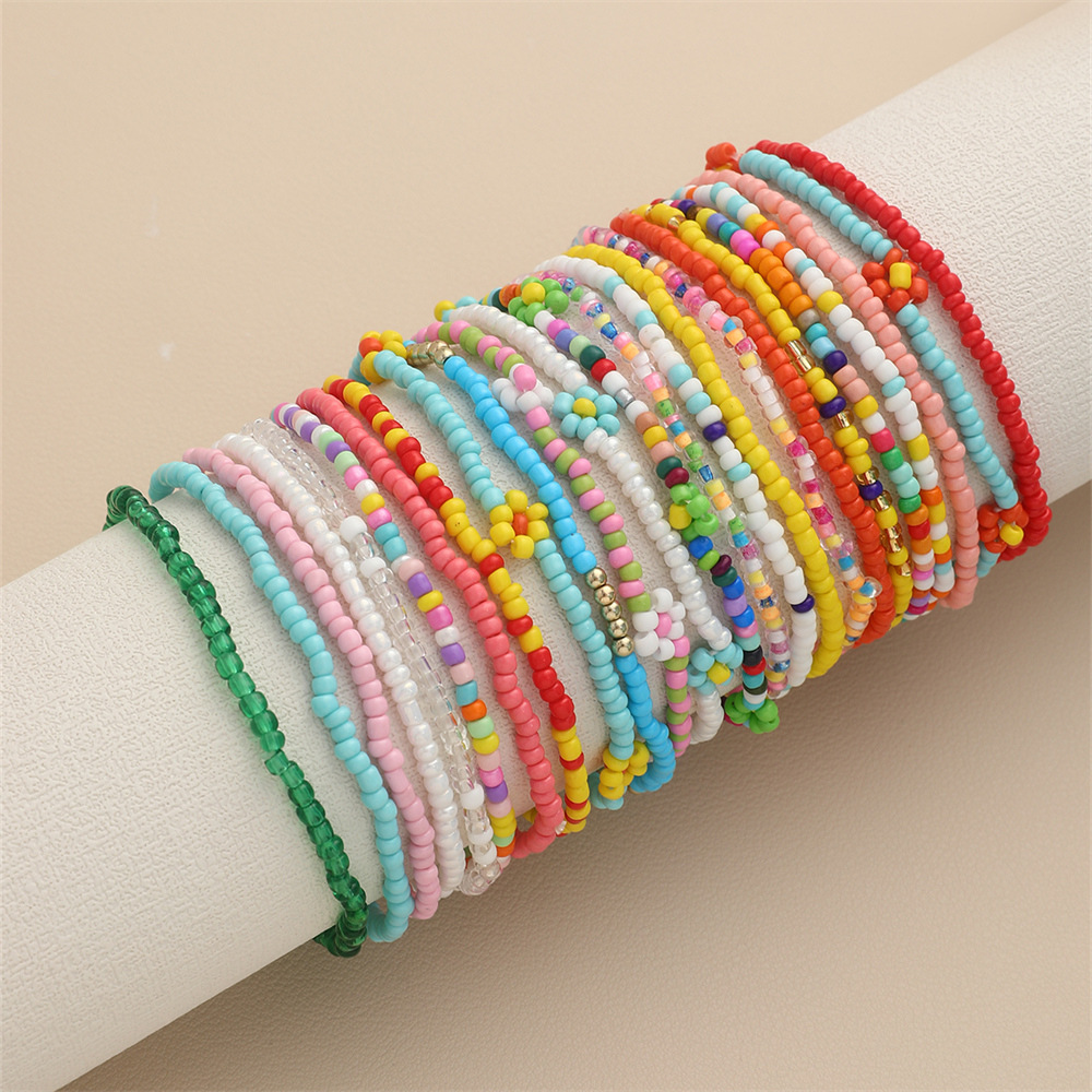 Amazon hot selling new bohemian style beaded anklet colorful small flower beaded anklet 10 piece set random hair
