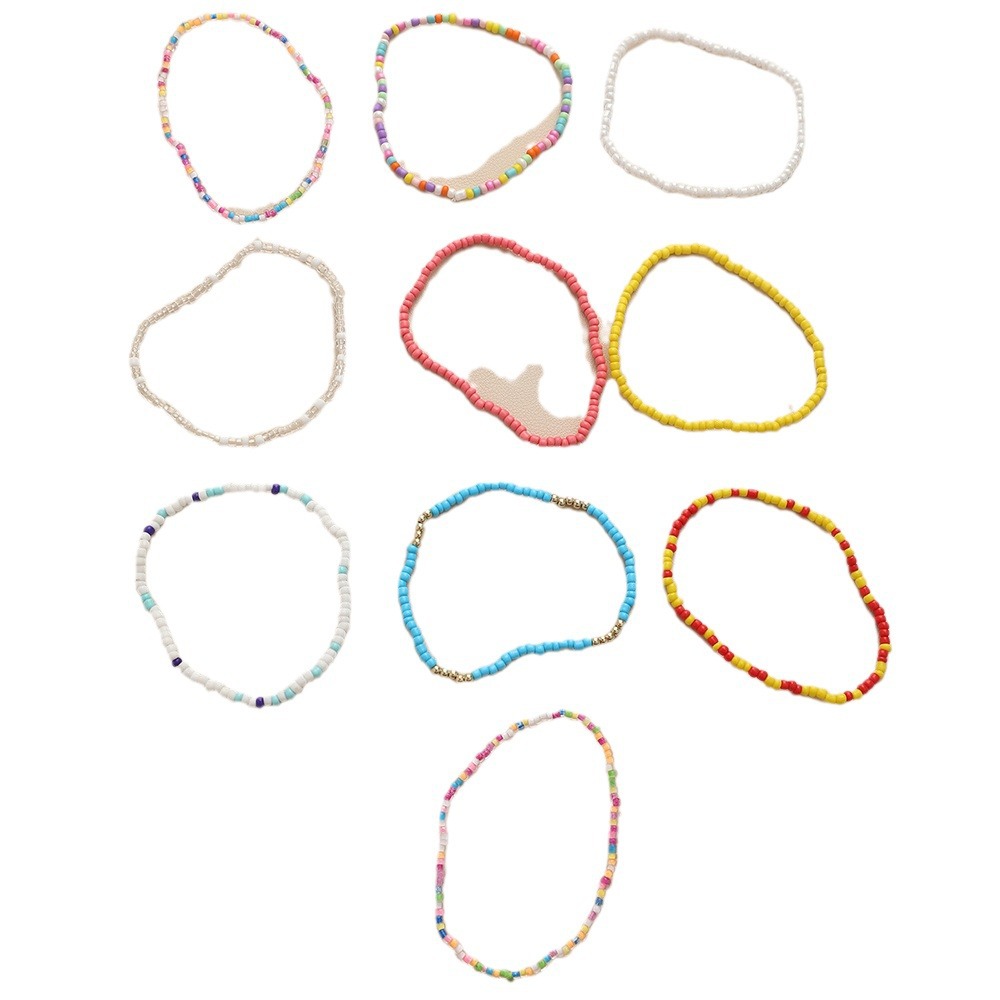 الأعلى مبيعًا على أمازون خلخال مطرز بالخرز على الطراز البوهيمي الجديد ملون على شكل زهرة صغيرة مطرز بالخرز طقم من 10 قطع شعر عشوائي