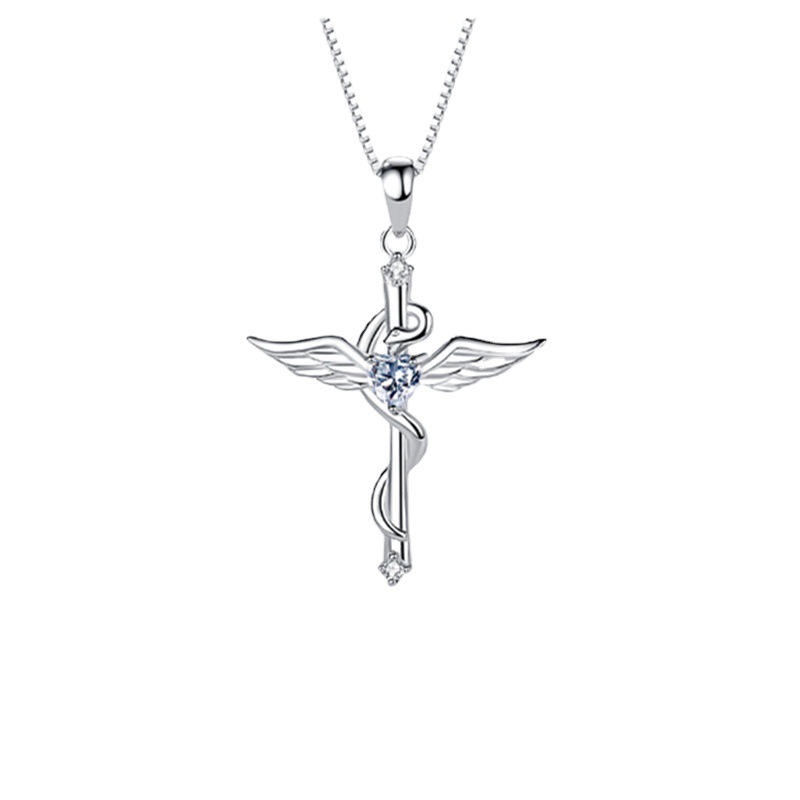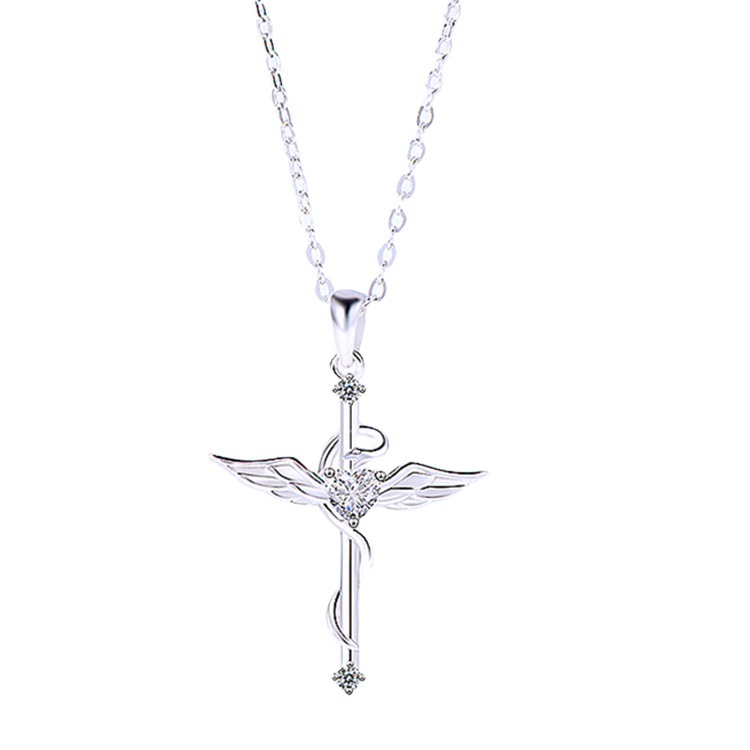 | nameOriginal | Amazon jewelry Angel cross pendant necklace female 925 sterling silver cross sweater chain silver necklace wholesale |