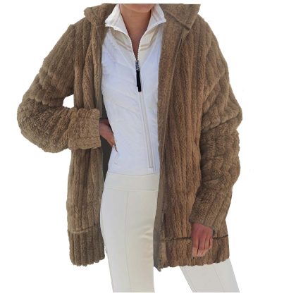 Amazon New European and American 2023 Autumn and Winter Warm Plush Solid Color Zipper Pocket Hooded Loose Woolen Jacket for Women