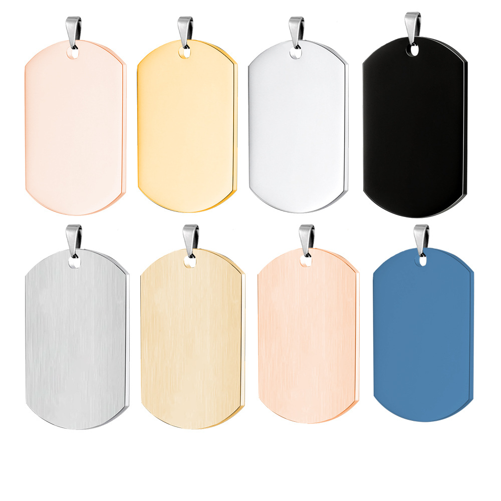 | nameOriginal | Amazon Stainless Steel Blank Military Brand Multi-specification Couple Pendant Military Brand Personality Engraving Color Printing Engraving Wholesale |