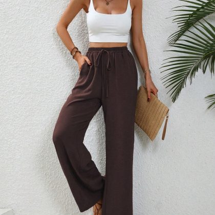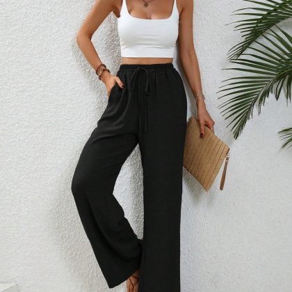 ملابس نسائية أوروبية وأمريكية من Amazon Tiktoktemu لربيع وصيف 2024 جديدة متعددة الاستخدامات بألوان سادة وسراويل غير رسمية واسعة الساق