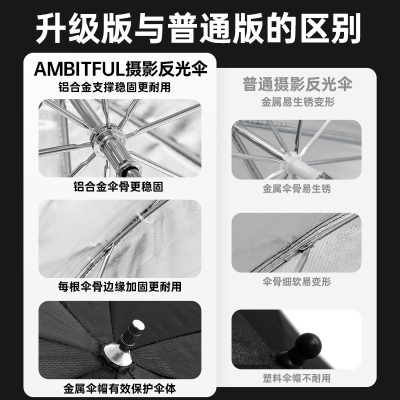 | nameOriginal | Ambitful Zhijie Reflective Umbrella Photography Umbrella 33/40/43 "Inner Silver Upgrade Aluminum Alloy Shooting Flash |