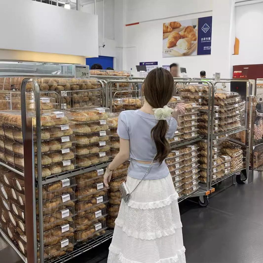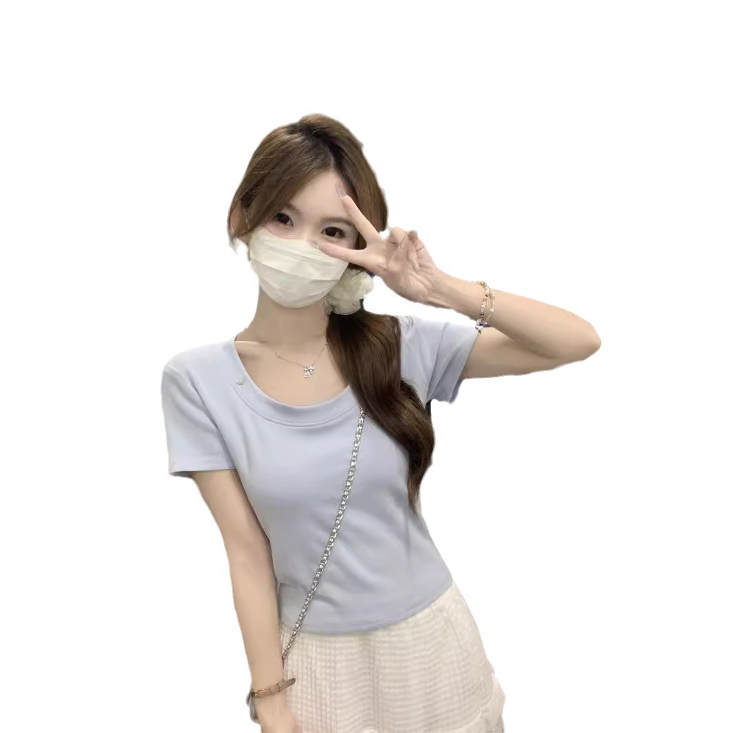 | nameOriginal | American 2024 Summer New Korean-style U-collar Shoulder Solid Color Waist-exposed Design All-match Short-sleeved T-shirt Women's Top |