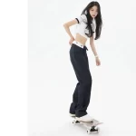 | nameOriginal | American Casual High Waist Contrast Color Cuff Floor-Mopping Pants Workwear |