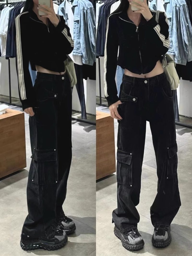 | nameOriginal | American high street wide leg workwear jeans women's plus size chubby girl design sense niche loose cover slim straight pants |