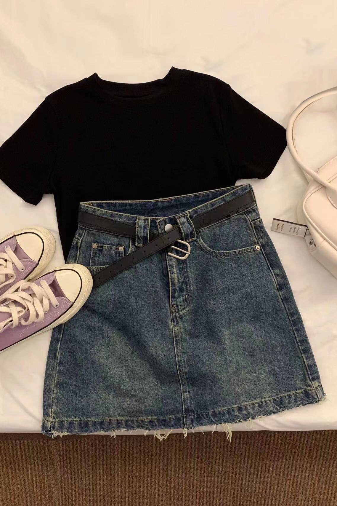 | nameOriginal | American Hot Girl anti-exposure Denim short skirt word skirt women's summer high waist slimming small one-step skirt |