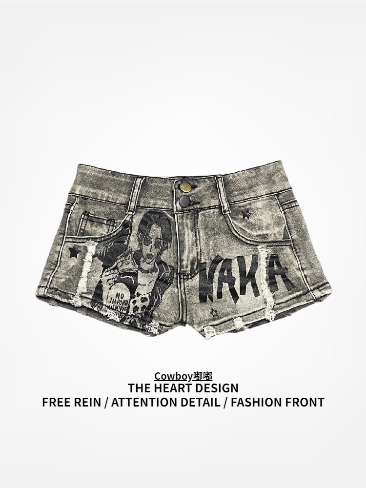 | nameOriginal | American hot girl retro low-waist denim super shorts women's summer new slim design printed high street casual pants |