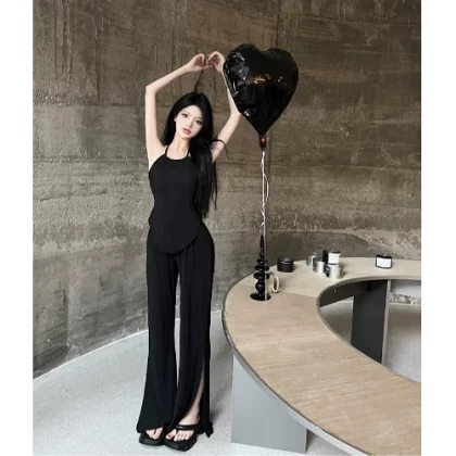 | nameOriginal | American irregular backless sleeveless slit suit halterneck |