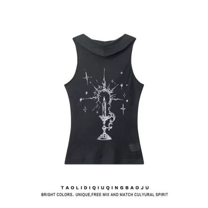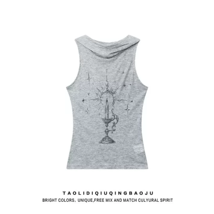 | nameOriginal | American print hooded slim fit sleeveless T-shirt vest |